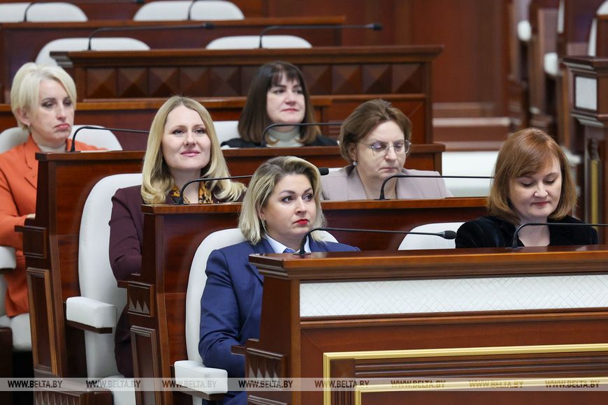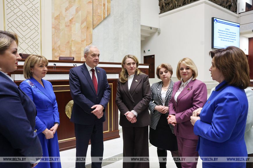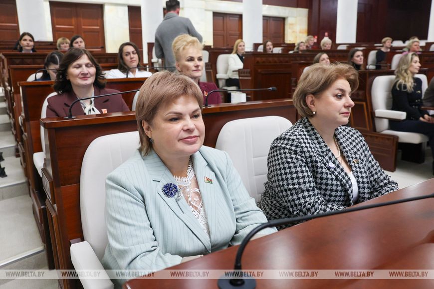 Przewodniczący zauważył również, że kobiety odegrały wyjątkową rolę w kształtowaniu się i rozwoju białoruskiego parlamentaryzmu. Dzisiaj przedstawicielki płci pięknej pozostają w awangardzie życia społeczno-politycznego i państwowego kraju. Tak więc do Izby Reprezentantów ósmej kadencji wybrano 37 kobiet, co stanowi jedną trzecią składu Izby Reprezentantów. Kobiety reprezentują praktycznie wszystkie dziedziny życia kraju. Zajmują najbardziej aktywną pozycję w rozwiązywaniu zadań stojących przed parlamentem.